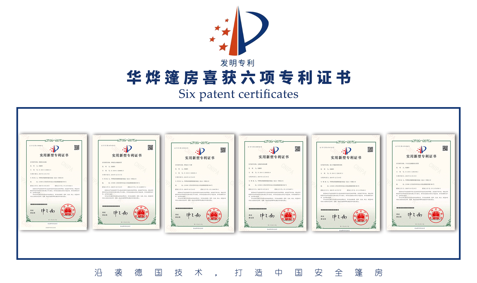 祝賀華燁篷房生產廠家再獲6項實用新型專利證書