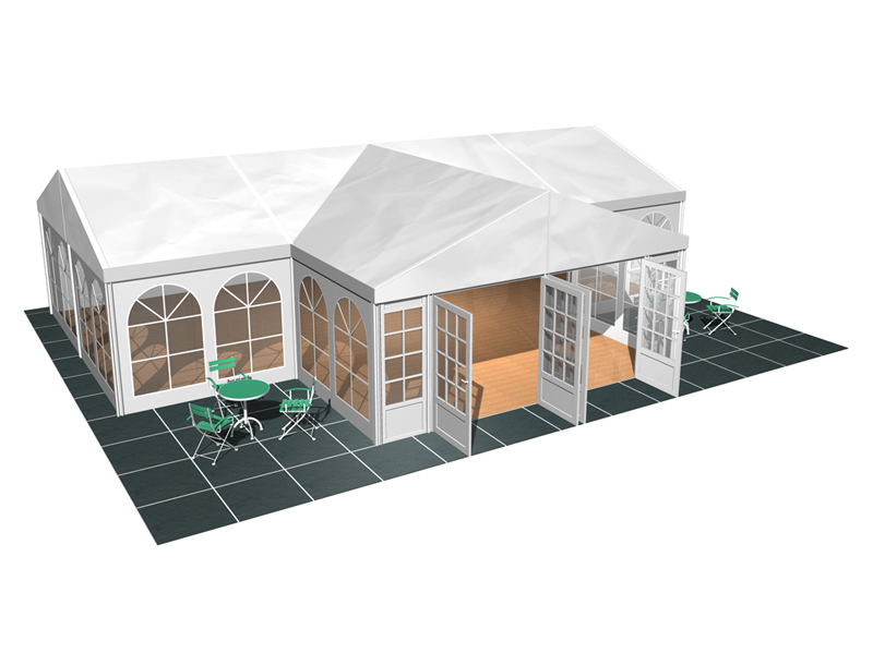 *在篷房配套上,華燁篷房廠家可提供地板、玻璃門、各種墻體。還有篷房專用空調(diào)、地毯、燈飾、承重盤、排水槽等等,也許您的需求可能與上圖所示不同,請直接聯(lián)系我們,了解此結(jié)構(gòu)可用的配件。