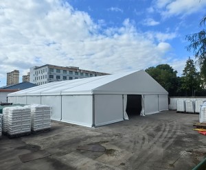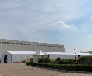 這2座工業(yè)鋁合金篷房規(guī)格分別為寬度為12米,長度為17米,邊高為3米,配置都是一樣的全篷布搭配雙開門。還有一座為寬度為10米,長度20米,邊高3米,這2座篷房主要是堆放臨時周轉(zhuǎn)生產(chǎn)物料,充分利用了廠區(qū)的土地資源,緩解對倉庫需求的壓力。
